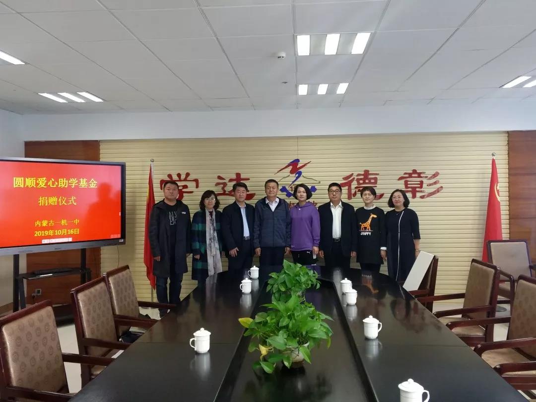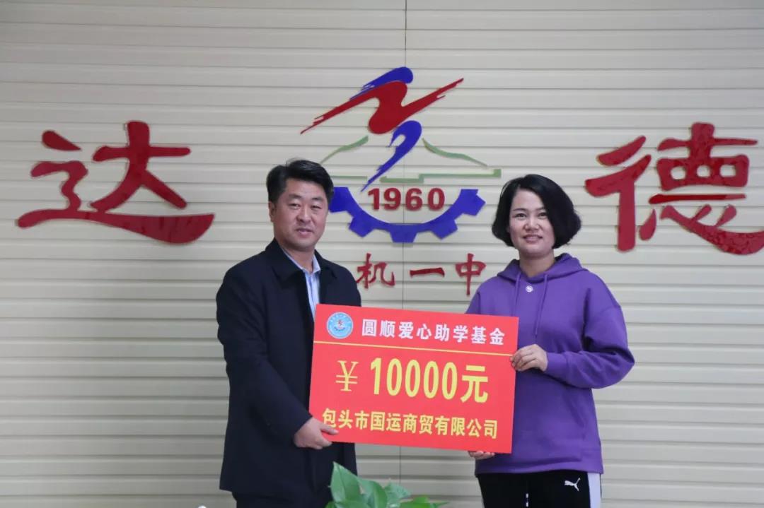 2019年10月16日,包頭河套商會(huì)黨委書記兼常務(wù)副會(huì)長(zhǎng)、誠(chéng)鋼集團(tuán)行政顧問王兆磊先生和包頭市國(guó)運(yùn)商貿(mào)有限公司總經(jīng)理李秀梅女士共同出席一機(jī)一中“圓順愛心助學(xué)基金”捐贈(zèng)儀式。