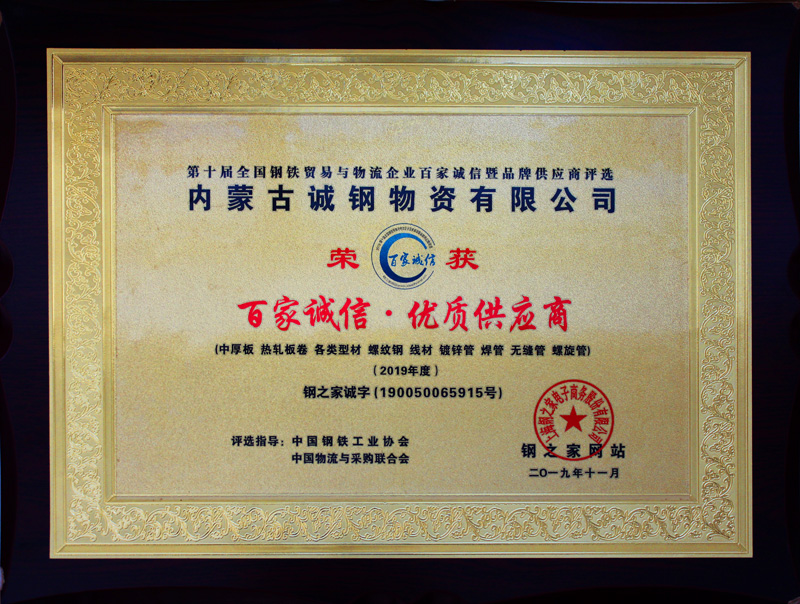 【誠鋼集團】恭賀誠鋼榮獲“百家誠信暨優(yōu)質(zhì)供應(yīng)商”