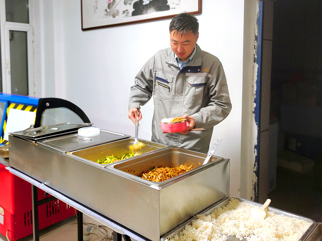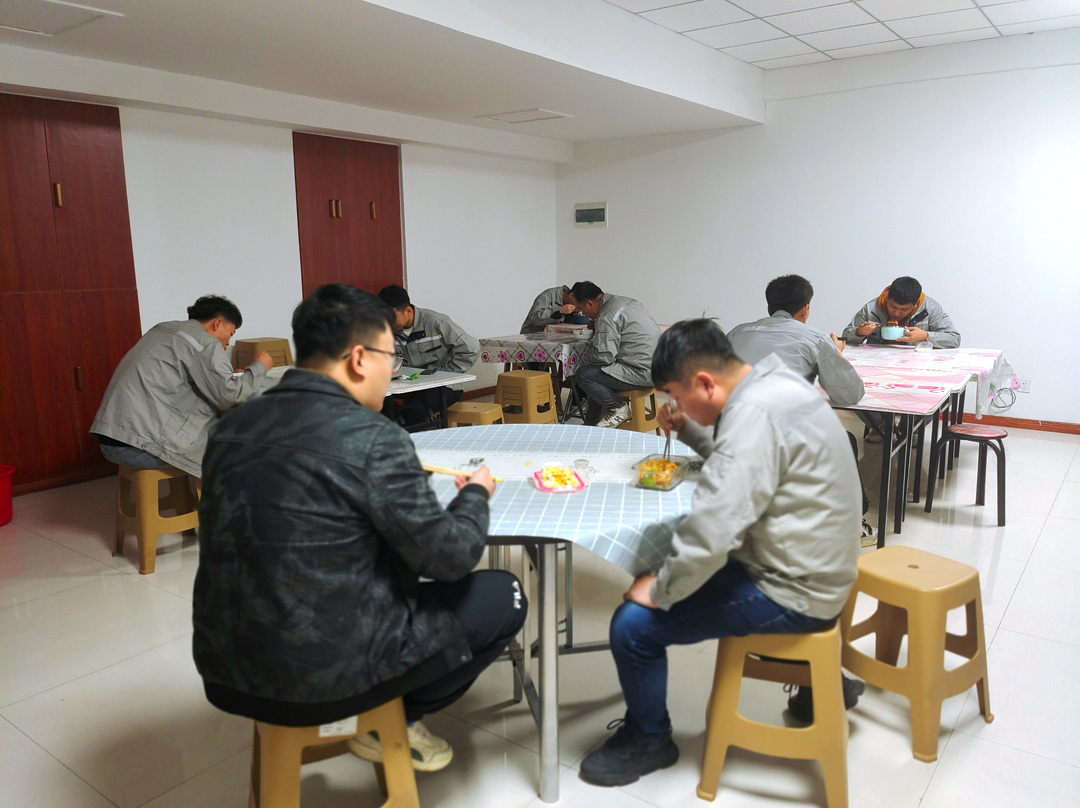 員工餐廳公司為駐守家人準(zhǔn)備了豐盛的一日三餐,讓大家在工作之余能感受到公司這個(gè)大家庭的溫暖。用餐時(shí),大家也能自覺主動(dòng)地遵守“錯(cuò)峰取餐,區(qū)隔用餐”的防疫要求,給大家點(diǎn)一個(gè)大大的贊!