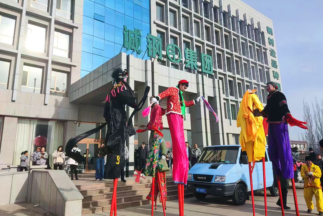 迎新團(tuán)拜結(jié)束后,公司邀請(qǐng)高蹺隊(duì)來為大家獻(xiàn)上高蹺表演,一時(shí)間集團(tuán)大樓門前人聲鼎沸,鑼鼓齊鳴。